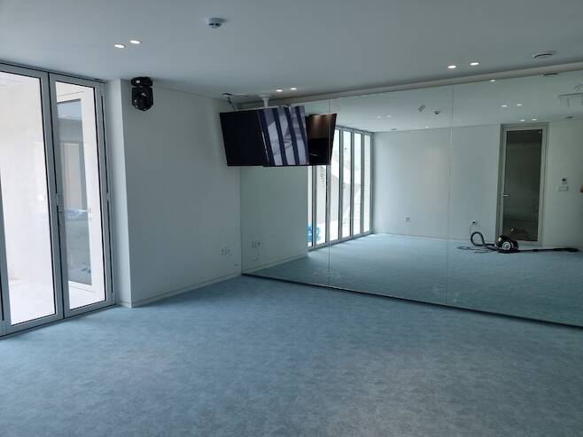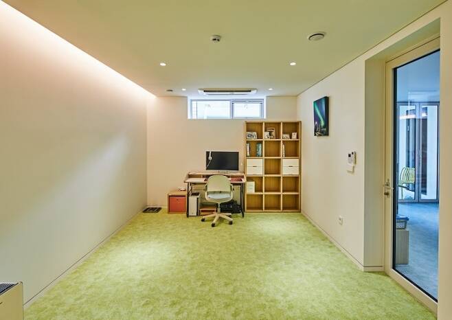아기 놀이방에서 방음 문을 열고 들어가면 멀티룸이 나와요. 지하지만 남쪽 창으로 햇살이 잘 들어와서 밝고 화사한 느낌이에요.