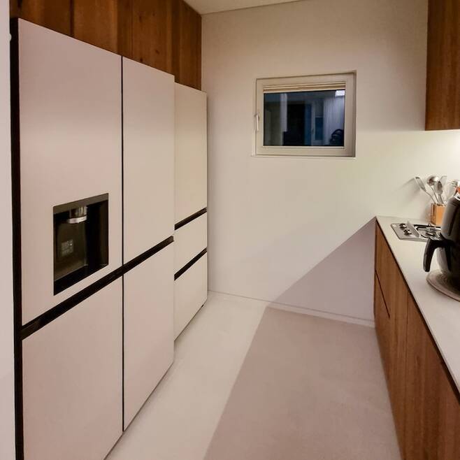 저희 집 메인 냉장고는 예쁘지만 보조 주방 안에 들어 있어서 아쉬운 아이에요. 구해줘 홈즈 촬영 때 최신형 냉장고로 바꿔주신다고 협찬이 들어왔었지만 얼음정수기를 너무나 잘 쓰고 있어서 과감하게 거절해버렸네요. 지나고 나니 금전적으로는 살짝 아쉽네요.