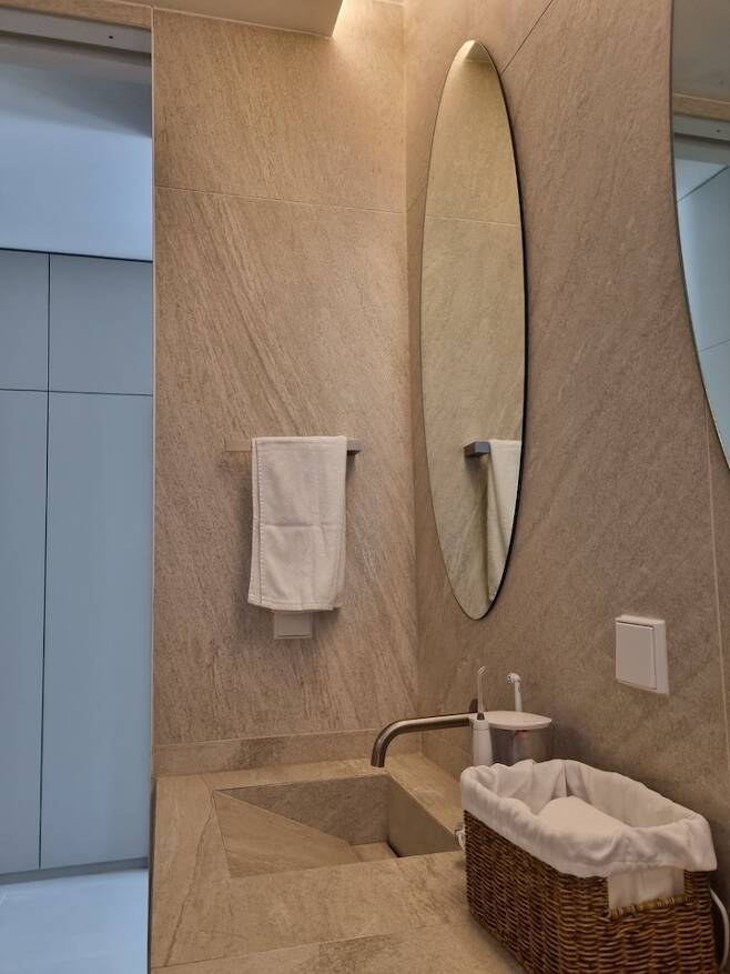 안방에서는 파우더룸과 드레스룸, 욕실로 바로 이어집니다. 일반적인 아파트와 비슷한 동선으로 설계했는데 저희 생활 패턴도 그게 가장 편한 듯 싶었어요.
