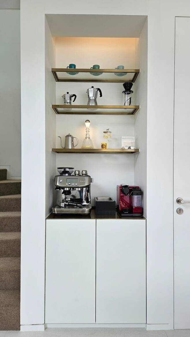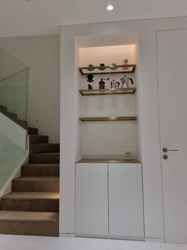 계단 옆에는 저만의 홈바를 꾸며서 좋아하는 커피를 매일 내려먹고 있습니다.