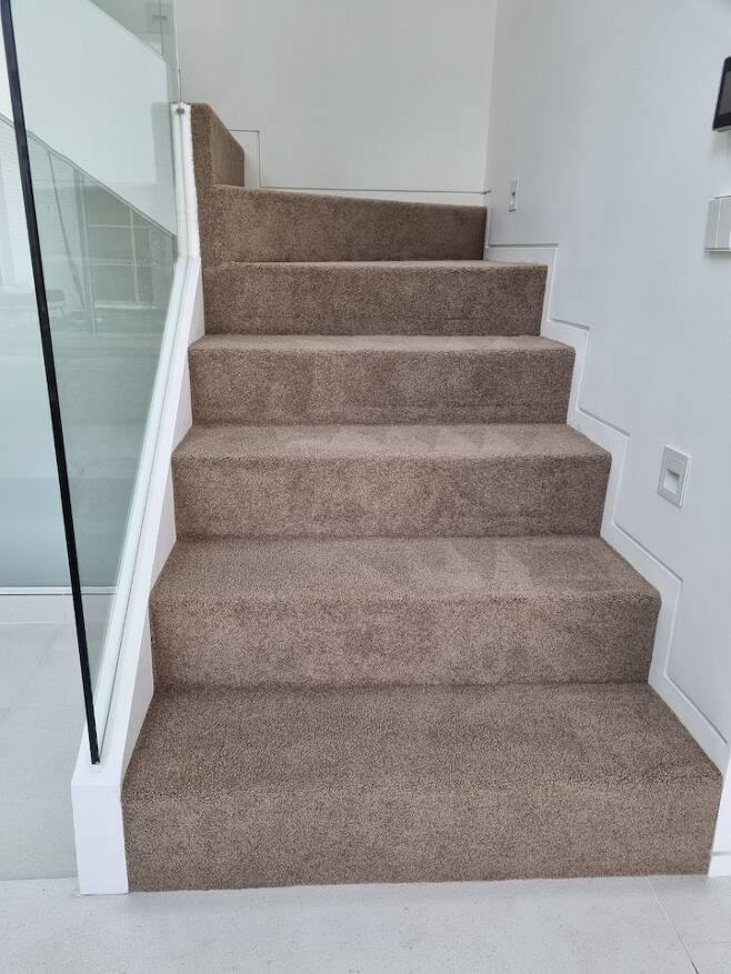 다시 거실로 나가서 계단을 따라가 볼게요. 처음엔 계단을 타일로 할지 나무로 할지 고민했었는데 제가 무릎이 약해서 남편이 카펫으로 밀어 붙였어요.