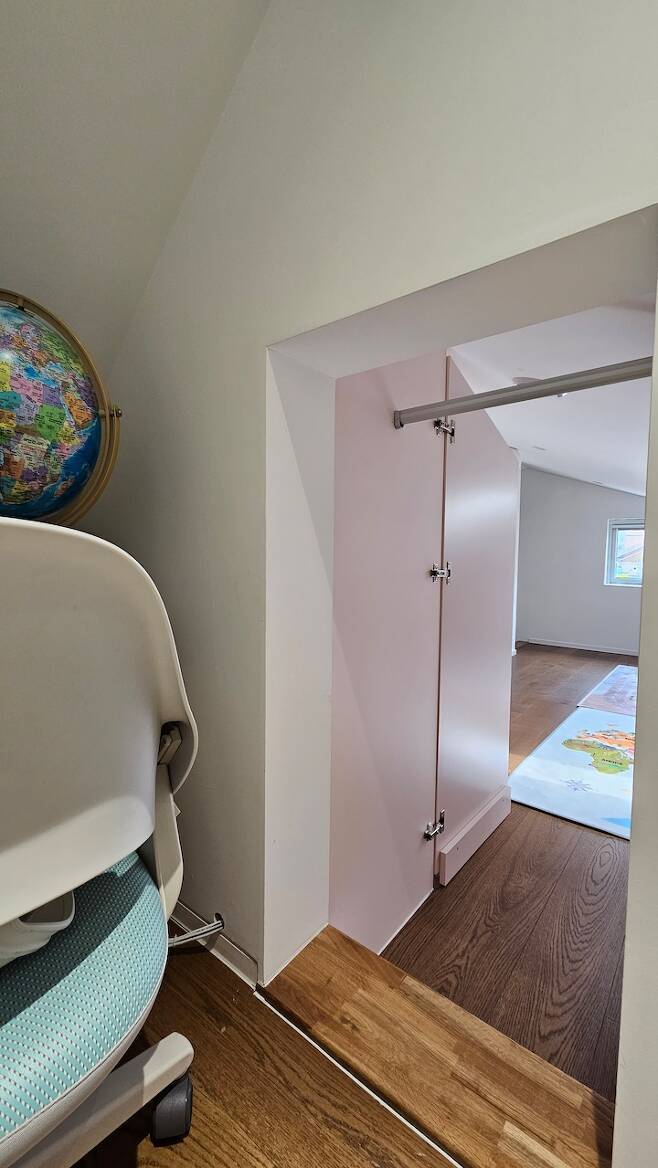 책상 뒤 문을 열면 비밀의 공간을 지나 안방 복층에 있는 아기 놀이방으로 통하는 옷장문이 나와요. 공간이 많아서 정신없이 소개하다 보니 두서가 없어졌네요.