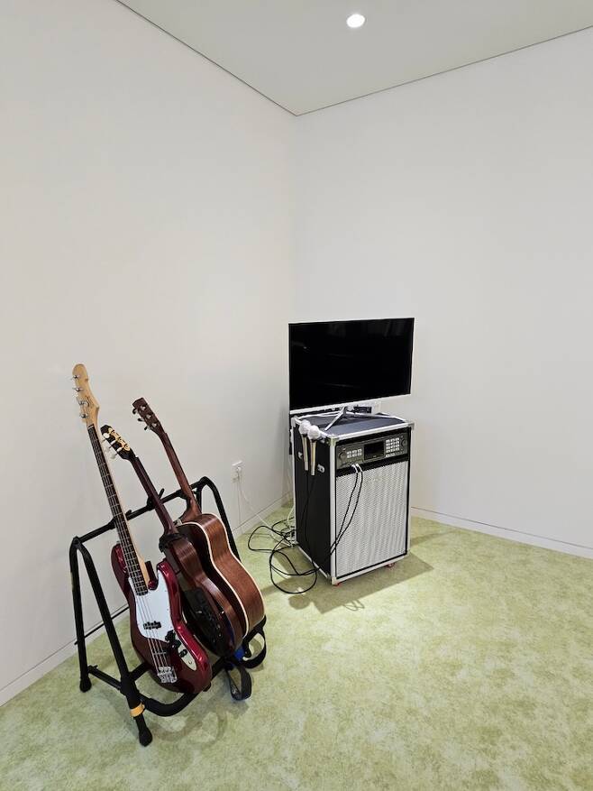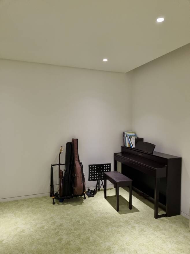 여기도 노래를 좋아하는 저의 취미생활을 위해 보컬 연습을 하고 녹음을 할 수 있는 공간으로 꾸미려고 했으나 후반에는 건축비가 부족해서 노래방 기계와 악기들, 갈 곳을 잃은 운동 기구 몇 가지, 저의 조그만 서재 등 멀티룸이 되어버렸답니다. 집이야 저희가 사용하기 나름이니 살면서 조금씩 바꿔 보려구요.