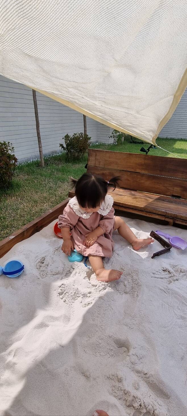 실외 계단을 따라 정원으로 올라가면 아빠가 직접 만든 아기 모래놀이장이 있습니다.
