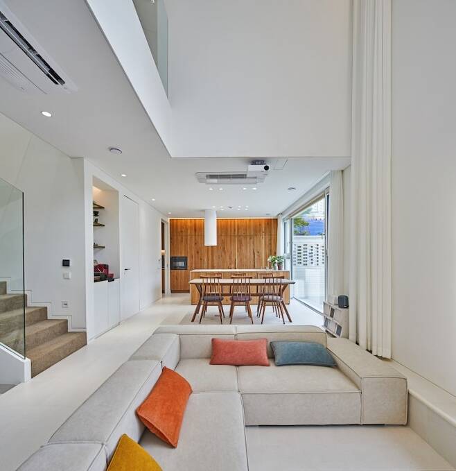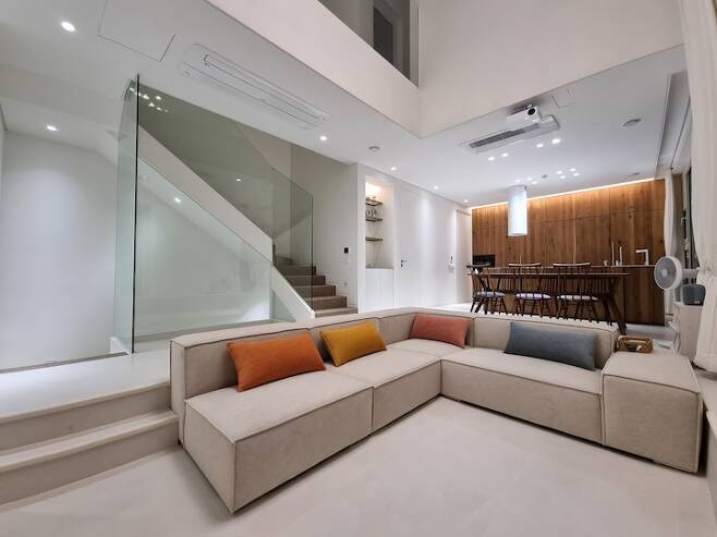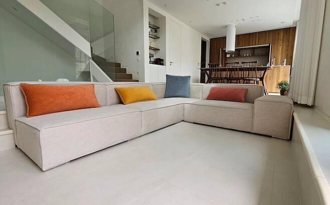 거실은 바닥을 다운시켜서 아늑한 느낌을 살렸어요.