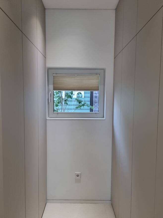 이웃한 창을 모두 줄을 맞추어 설계하여 실용적 측면에서는 일부 불편한 점이 있으나 깔끔한 외관을 만들 수 있었어요.