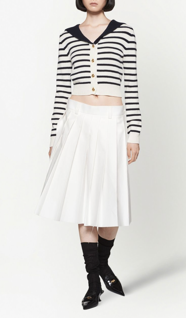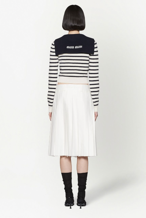 사진 속 가디건 정보 - Miu Miu 스트라이프 캐시미어 스프레드 칼라 가디건