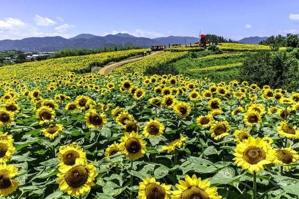 매년 6월부터 7월 사이에 강주 해바라기 축제가 열리며, 이 시기에 방문하면 48,000㎡에 달하는 광활한 해바라기 밭을 감상할 수 있습니다. 노란 해바라기가 만발한 풍경은 사진 촬영 명소로도 인기가 높습니다.
