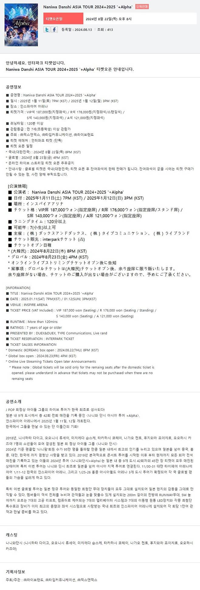 * 글로벌 : 2024년 8월 23일(금) 4PM (KST)