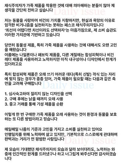 채식주의자로 자기소개했는데 소가죽가방 메고 나와서 논란이었나봄