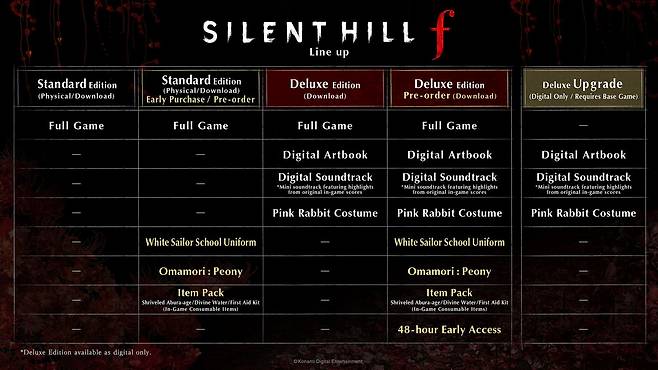 코나미 디지털 엔터테인먼트는 5일 스테이트 오브 플레이를 통해 시리즈 최신작 '사일런트 힐 f(SILENT HILL f)'를 9월 25일 PS5, XSX|S, PC로 출시한다고 발표했다. 실물 및 디지털 사전 예약 역시 함께 시작한다.