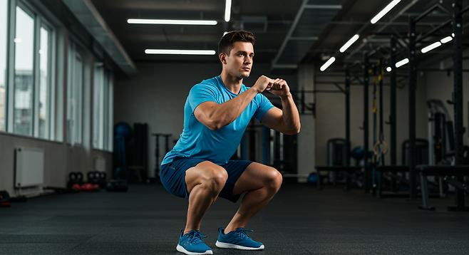 스쿼트 10회 × 3세트 (체중 스쿼트로 시작)