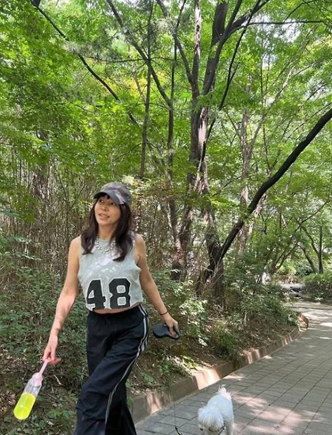 황신혜는 지난 23일 자신의 SNS에 "맥스와의 데이트"라는 멘트와 함께 반려견 맥스와 산책하고 있는 근황을 공개했는데요. 공개된 사진 속 그는 민소매 크롭티와 검은색 트레이닝 바지 패션으로 편안하면서도 트렌디한 느낌을 보여줬습니다. 1963년생으로 올해 61살인 황신혜는 나이가 무색한 동안 미모와 완벽한 몸매를 자랑해 눈길을 끌었는데요.