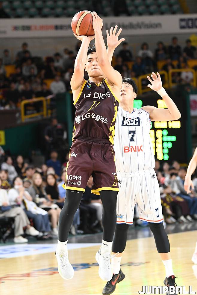 유기상은 가스공사와 맞대결에서 샘조세프 벨란겔과 부딪혀 눈 위쪽을 7바늘 꿰맸는데 KCC와 경기에서 3점슛 4개 포함 14점을 올리며 LG의 기분좋은 출발에 힘을 실었다.