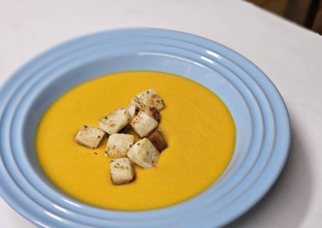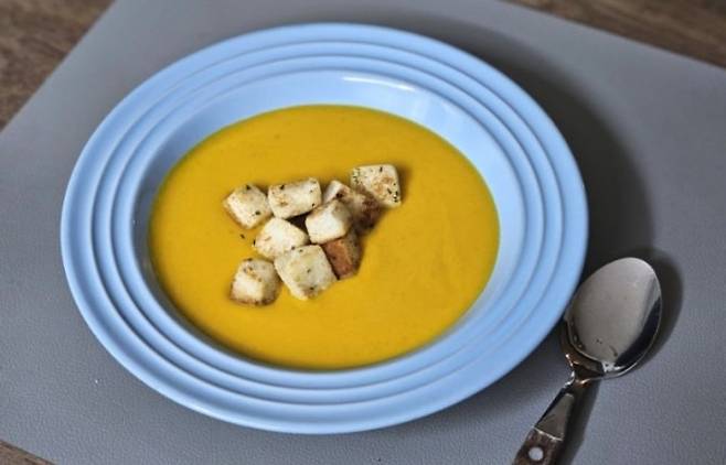 우유를 넣어 더 부드럽고 고소한 단호박죽 아침대용이나 간식으로 만들어보세요.