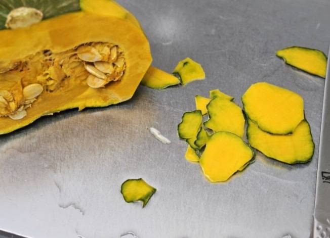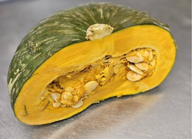 단호박은 크기에 따라 전자렌지에 2~3분 정도 돌려주면 껍질을 쉽게 제거할 수 있어요.