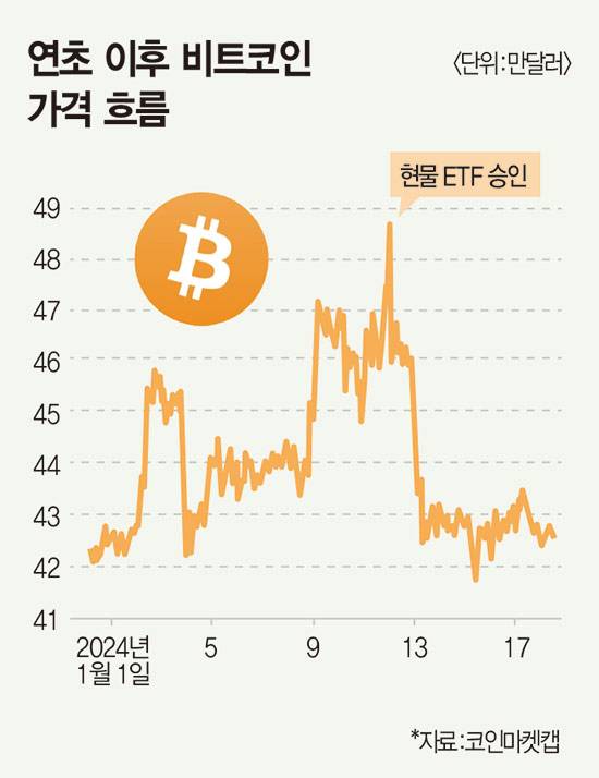 하지만 ‘제도권 투자자산으로 인정받았다’는 경탄은 잠시뿐. 승인 기대감에 1년 전 대비 200% 이상 급등한 비트코인 가격은 승인 직후 10% 넘게 하락했다. 오히려 투자자 관심은 벌써 ‘다음 ETF 후보가 무엇일까’로 넘어갔다. 새 챕터를 연 크립토 시장이 상승 곡선을 탈 수 있을까. 아니면 ‘탈중앙화’를 내건 코인이 제도권으로 편입되는 ‘아이러니한’ 상황에서 그 존재 가치를 잃어갈까.