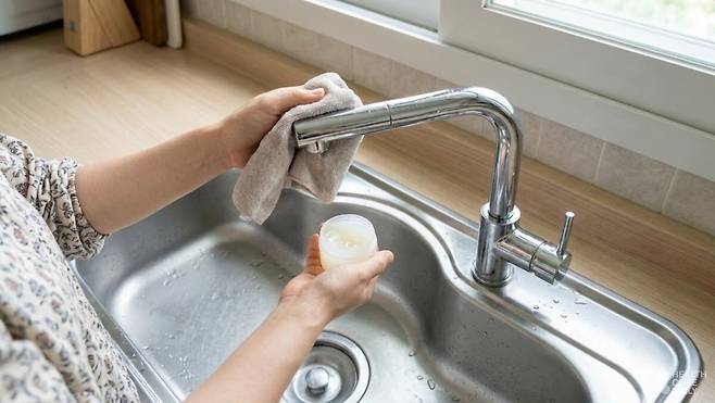주방 싱크대나 욕실 수전은 물이 마를 때마다 얼룩이 남기 쉬워 금세 탁해 보인다. 청소를 마친 뒤 바세린을 아주 소량만 묻혀 마른 천으로 닦아주면 표면이 미끄럽게 정리돼 물방울이 달라붙지 않고, 다음에 생기는 물때도 한결 적어 광택이 오래간다.