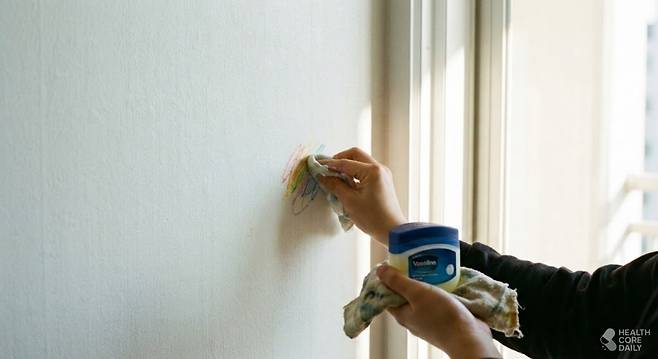 아이들이 크레용으로 낙서를 했다면, 바세린을 묻힌 천으로 살살 문질러 보자. 크레용에 포함된 왁스 성분이 바세린과 섞이면서 쉽게 녹아, 얼룩 없이 닦아낼 수 있다. 단, 소재에 따라 반응이 다를 수 있으니 눈에 띄지 않는 곳에 먼저 시험해 보는 것이 안전하다.