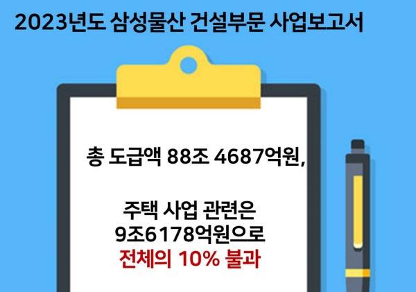 이렇다보니까 삼성물산 건설부문에서 주택사업이 차지하는 비율이 바닥 수준입니다. 올해 공시된 사업보고서를 봤더니 2023년 삼성물산이 수주한 건설계약이 약 88조 5000억원. 이 중 주택사업 도급액은 9조6000억원으로 10% 정도에 불과했습니다. 다시 말하면 삼성물산이 수주 활동을 안해서 래미안 아파트 분양도 없다는 거겠죠.
