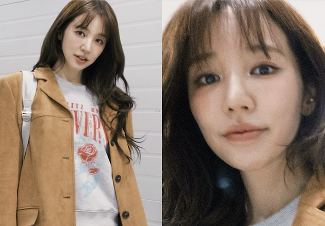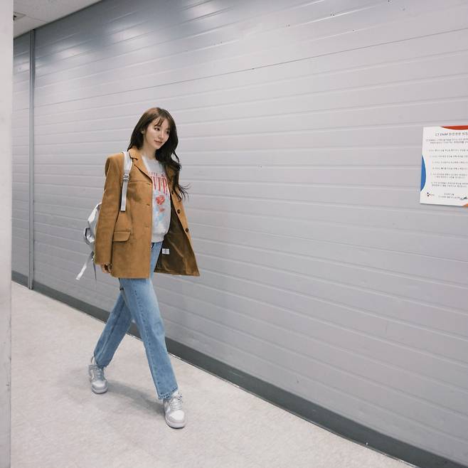 사진 속 윤은혜는 청바지에 그레이 맨투맨과 카멜색 자켓을 매치해 캐주얼하면서 스타일리시한 패션을 선보였습니다.