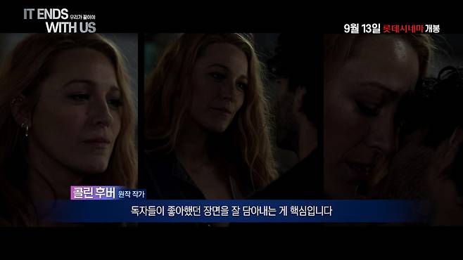 '릴리' 역을 맡아 다채롭고 섬세한 감정을 연기한 블레이크 라이블리는 "'릴리'의 강인한 모습과 연약한 모습, 방향을 잃었지만, 또다시 길을 찾는 과정을 지켜보며 사람들이 외로움을 달래기를 원했다"라며 각자의 상처를 지닌 모든 이들이 이번 작품을 통해 앞으로 나아갈 수 있는 용기를 받을 수 있기를 바란다고 전했죠.