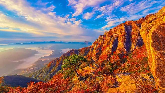 붉은 단풍이 산자락을 물들이는 계절, 전북 완주의 대둔산은 단풍 명소 이상의 경험을 선사한다.