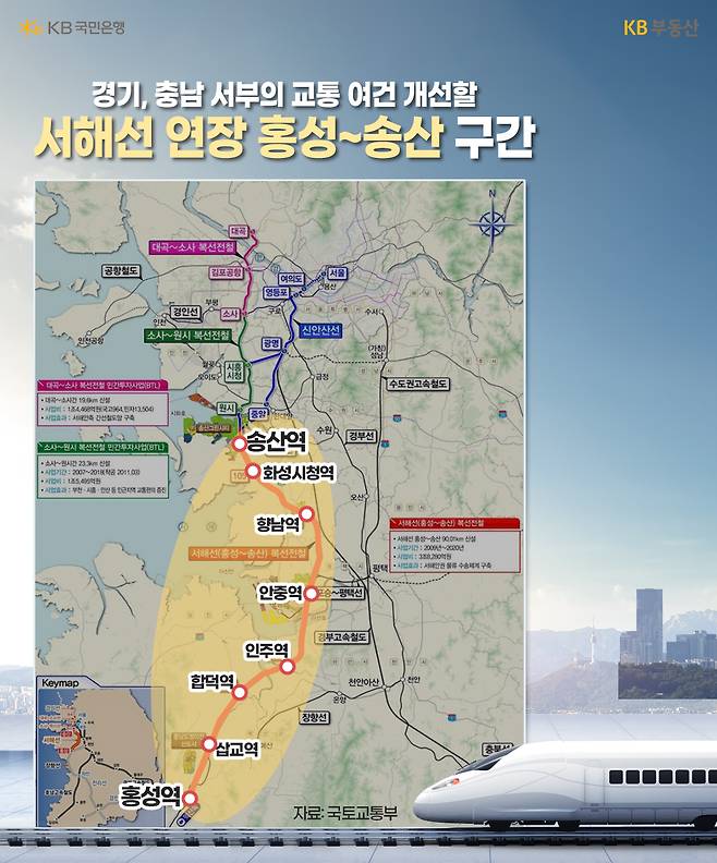 안중역을 이용할 수 있는 평택시 안중읍 ‘송담지엔하임1차’ 전용 84㎡는 지난 11월 4억1,900만원에 거래돼 두 달 만에 3,400만원 오르기도 했습니다. 노선 중 기존 계획에서 추가된 삽교역은 2025년 개통 예정인데요. 충남도청이 위치한 예산군 내포신도시가 삽교역을 이용할 수 있게 됩니다.