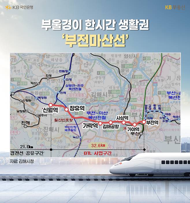 개통 후에는 부전역에서 마산역까지 기존 1시간 20분에서 38분이면 닿을 수 있게 됩니다. 부산, 경남, 창원 등 3개 도시를 잇는 복선전철로 남해 고속도로의 교통량을 분산시키고 부산, 창원, 김해 주민들이 개통의 수혜를 받을 것으로 예상됩니다. 마산역을 이용할 수 있는 창원시 마산회원구 양덕동 메트로시티 전용 124㎡는 12월 6억5,000만원에 거래됐습니다. 부전역을 이용할 수 있는 부산진구 범전동 '삼한골든뷰센트럴파크’ 전용 84㎡가 7억1,000만원에 거래됐습니다.