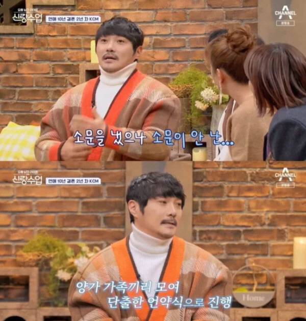 그로부터 9년이 지난 2021년, KCM과 A씨는 코로나19 여파로 혼인신고만 한 후 결혼식 없이 가족들과 언약식을 가졌습니다. KCM은 이듬해 11월 SBS 예능 '신발 벗고 돌싱포맨' 출연 당시 A씨와 10년 연애 후 결혼에 골인했다고 밝혔습니다.