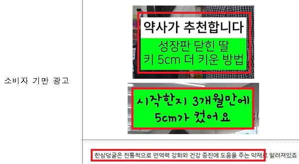 위반 유형을 보면, ‘키 성장’, ‘키가 쑥쑥’, ‘키 크는’ 등 일반 식품을 건강기능식품으로 오인·혼동시키는 광고가 119건으로 가장 많았다. 이어 ‘키 성장’ 등 인정받지 않은 기능성을 내세운 건강기능식품의 거짓·과장 광고가 8건 적발됐다.