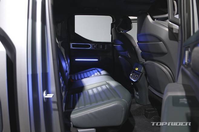 또한 전자식 차동기어 잠금장치(e-LD), 저속 주행을 유지해주는 X-TREK, 산악 지형 특화 터레인 모드, 그라운드 뷰 모니터, 디지털 계기판과 디스플레이를 통해 엔진과 변속기 오일류 온도 등을 확인할 수 있는 오프로드 페이지 등 험로 주행에 유용한 전용 사양을 갖췄다.