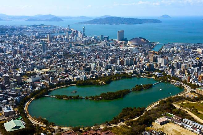 후쿠오카 도심 중앙에 큰 호수를 따라 산책하기 좋은 오호리 공원은 1929년에 개원하여 전국에서도 손꼽히는 수경공원으로 그 풍경이 상당한 곳인데요. 둘레 약 2km의 산책길과 들새 숲이 있으며 계절마다 달라지는 꽃과 풍경 속에서 조깅, 사이클링, 야생 조류 등을 관찰하기 좋은 장소죠.