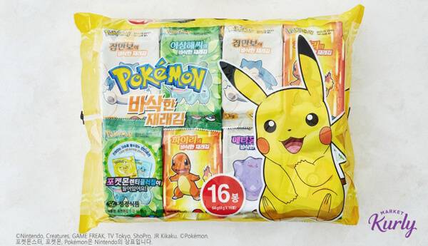리테일 테크 기업 컬리는 33종의 포켓몬스터 스티커가 들어있는 ‘포켓몬 김’을 장보기 앱 마켓컬리에서 판매하고 있다. ‘포켓몬 바삭한 재래김’이라는 이름의 패키지로, 포장지에는 피카츄부터 잠만보까지 9종의 캐릭터가 그려져 있다. 해당 상품에는 보는 각도에 따라 포켓몬들의 진화 과정을 볼 수 있는 3D 입체카드 ‘렌티큘러 칩’도 무작위로 들어있다. 3봉 든 한 패키지의 판매가는 2,200원이다.