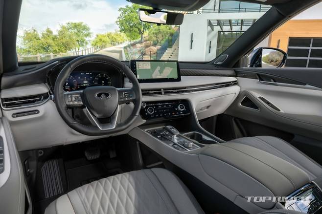 신형 QX60 실내에는 12.3인치 디지털 계기판 및 디스플레이, 스톤 그레이 컬러, 블랙 오픈 포어 애쉬 우드 트림 등 고급 사양이 배치됐다. 신형 QX60은 최상위 트림을 제외한 모든 트림에서 가죽 시트가 빠지고 65% 재활용 소재로 구성된 테일러핏 시트가 탑재됐다.