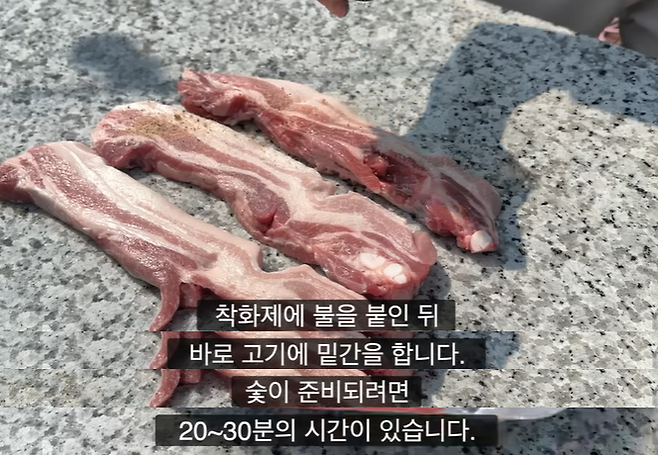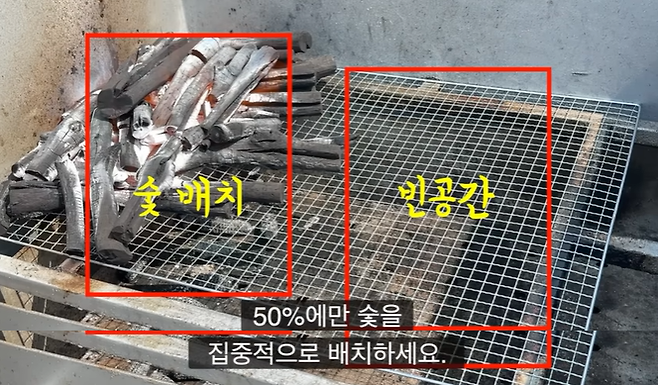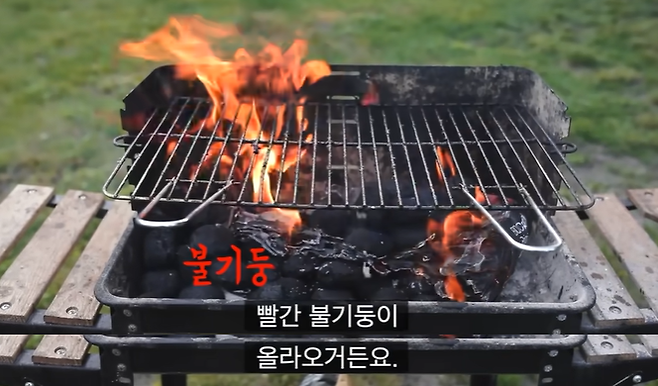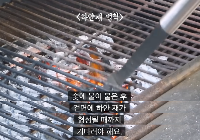 숯은 하얗게 될 때까지 기다려라숯이 빨갛게 타오르는 상태는 불이 너무 센 거라 겉만 타버리기 쉽습니다. 겉은 하얗게 변하고 안쪽이 은근하게 빨간빛이 돌 때가 고기 굽기 딱 좋은 불이에요.