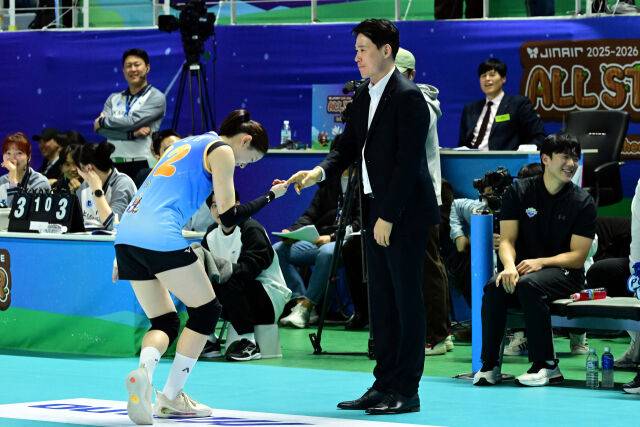 25일 강원도 춘천 호반체육관에서 진행된 '진에어 2025~2026 V리그' 올스타전에서 이다현과 강성현 감독의 세리머니가 큰 주목을 받았다.