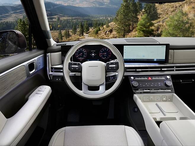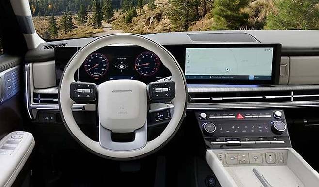 가장 충격적인 변화는 센터페시아의 완전한 재설계다. 기존 싼타페의 듀얼 디스플레이 구조를 과감히 폐기하고, 16:9 비율의 초대형 플로팅 디스플레이 하나로 통합했다. 이는 마치 테슬라 모델 Y나 모델 3에서 볼 수 있는 중앙 배치형 대형 스크린과 유사한 방식이다.