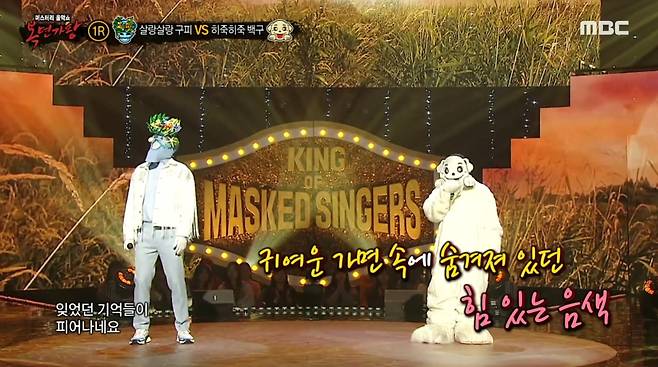 두 번째 무대는 ‘살랑살랑 구피’와 ‘히죽히죽 백구’의 무대. 두 사람은 이미키의 ‘먼지가 되어’를 선곡해 시원함이 느껴지는 가창력을 뽐냈다. 결과는 64 vs 35로 히죽히죽 백구의 승리. 이문세의 ‘휘파람’을 부르며 공개한 살랑살랑 구피의 정체는 데뷔 29년차 록밴드 YB의 베이시스트 박태희였다. 다른 누구보다도 판정단에 앉아있던 윤도현은 “형이 여기 왜 나와있어!”라며 반가움과 당황스러움이 뒤섞인 웃음을 지었다.