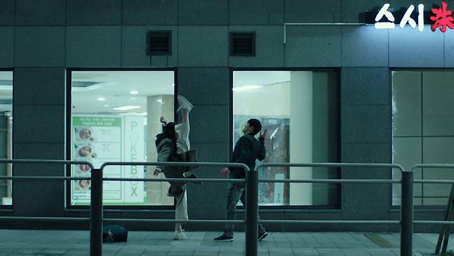 "신혜선 씨가 마른 체형이에요. 그래서 옷을 겹쳐 입고 군화를 신어서 이준영 씨와 대등해 보일 수 있도록 했어요. 영화의 시그니처 액션이 혜선 씨가 발로 찍어 내리는 킥인데, 내려찍는 파워를 싣기 위해 액션스쿨에서 6개월간 매일같이 연습했어요. 액션이 살아있다는 건 허명행 무술감독, 배우, 대역이 정말 한 몸으로 만들었기 때문일 거예요. 저는 뭐, 옆에서 참견만 했죠. 하하."