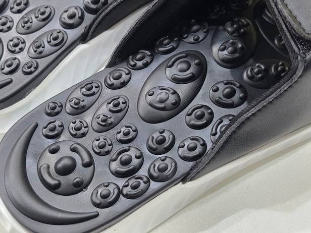 발바닥과 닿는 면에 돌기가 있는 ‘지압 슬리퍼’는 일상에서 손쉽게 발 마사지를 할 수 있어 편리한데요. 시중에 다양한 지압 슬리퍼 중에서도 ‘다이어트학교 리압 부끼독스 슬리퍼’는 발의 혈 자리를 정확하게 자극하도록 설계됐습니다.
