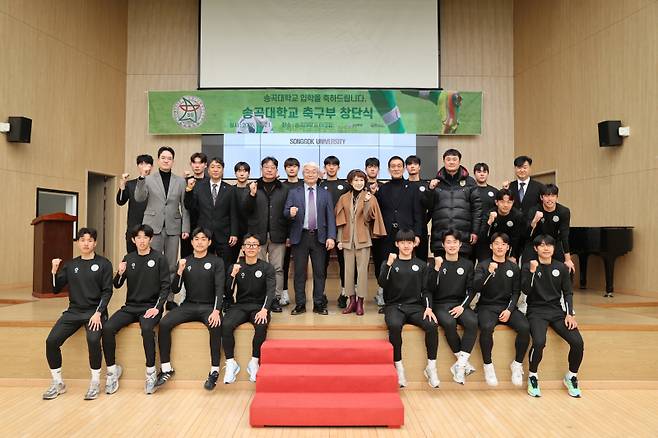 창단식에는 왕덕양 송곡대 총장을 비롯해 박정애 부총장, 박한동 대학축구연맹 회장 등이 자리를 빛냈다. 18명의 선수단과 학부모, 학교 관계자들도 송곡대 축구부의 출발을 함께했다.