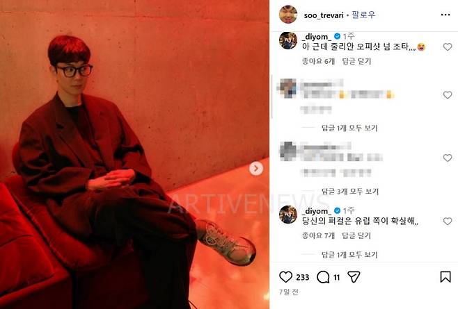 지난 3일 윤 대표는 자신의 일상 사진들을 다수 게재했는데, 해당 게시글에 김지영이 직접 "당신의 퍼컬은 유럽 쪽이 확실해"라는 댓글을 달았습니다. 이밖에도 독서와 책에 관련한 게시글에 직접 "책 읽어줘"라는 댓글도 남기기도 했고, 함께 영화를 봤다는 댓글도 남겨 눈길을 끌었습니다.