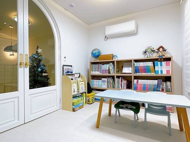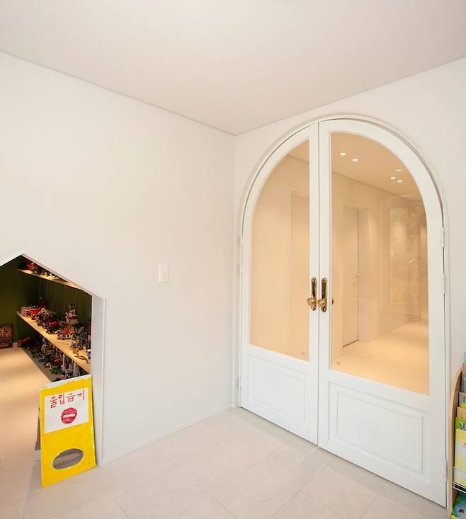 아치 도어의 옆 쪽으로 보이는 방은 아이 방입니다. 이사 오면서 아이가 혼자 자는 독립기념일을 맞이하였는데, 설계하고 시공해주시는 분들이 정말 신경을 많이 써주신 공간 중 하나입니다.