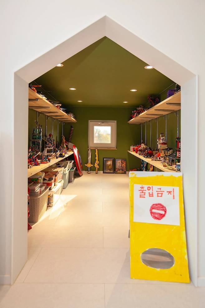 아치 도어 안쪽의 플레이룸은 아이의 작은 책상과 레고방으로 이루어져 있습니다. 레고를 정말 정말 좋아해서 이사 오기 전에는 모든 수납장이 레고였는데 이사를 오면서는 레고를 둘 수 있는 공간을 미리 마련했어요.