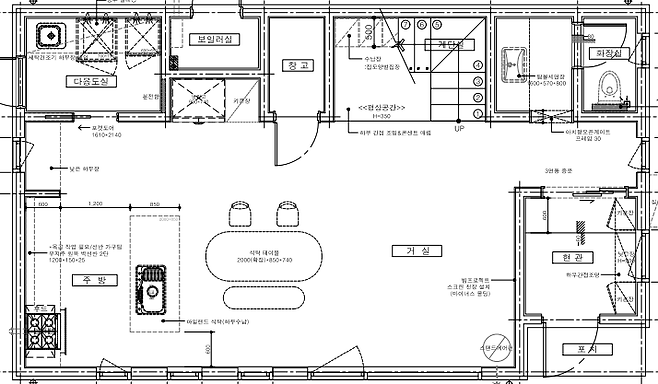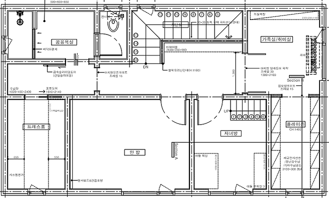 두보유 도면입니다. 손님을 자주 초대하는 저희 가족의 특성 상 1층에는 방이 없이 주방과 거실을 연결하여 최대한 넓은 공간이 나오도록 선택했고, 2층에 모든 방과 드레스룸까지 올려서 손님맞이에 불편함이 없도록 설계했어요.