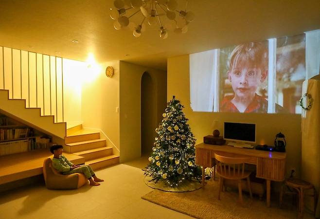 연말에는 크리스마스를 맞이하여 두보유 거실도 이렇게 바뀌었답니다. 빈백에 앉아 케빈도 만나고 캐롤도 들어요. 트리는 이번에 장만한 트리 데코 그레이스 트리입니다. 예쁘고 포근합니다.