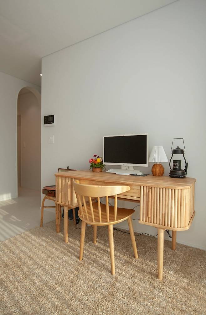 아치 도어 안쪽의 플레이룸은 아이의 작은 책상과 레고방으로 이루어져 있습니다. 레고를 정말 정말 좋아해서 이사 오기 전에는 모든 수납장이 레고였는데 이사를 오면서는 레고를 둘 수 있는 공간을 미리 마련했어요.