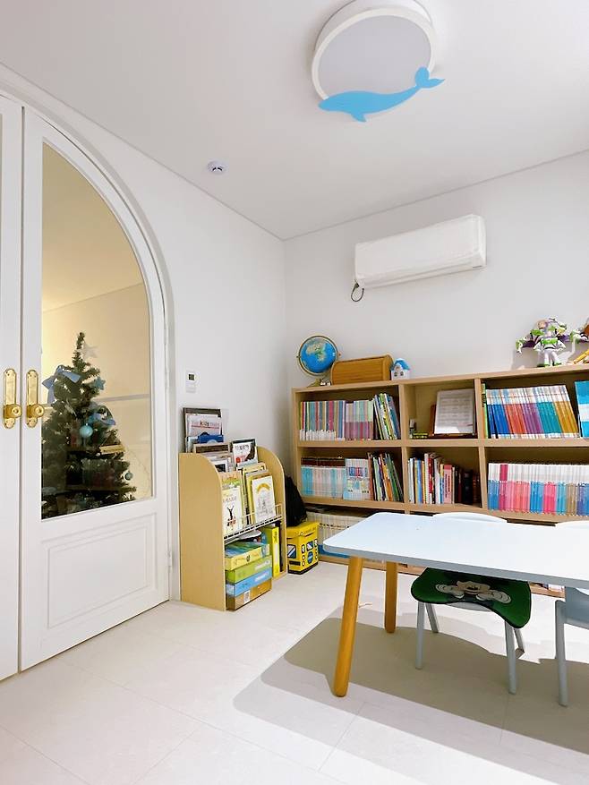 아치 도어의 옆 쪽으로 보이는 방은 아이 방입니다. 이사 오면서 아이가 혼자 자는 독립기념일을 맞이하였는데, 설계하고 시공해주시는 분들이 정말 신경을 많이 써주신 공간 중 하나입니다.