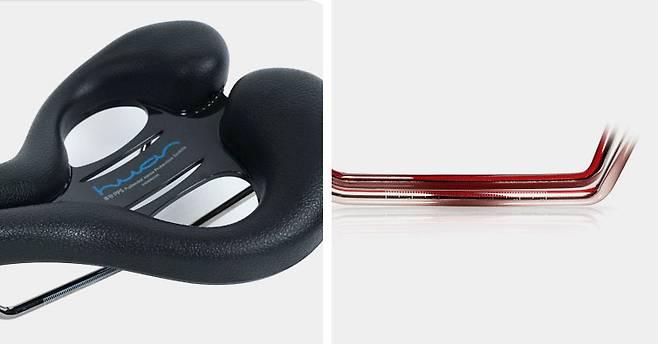 자전거에 오래 앉으면 땀이 차서 엉덩이에 습진이 생기기도 합니다. 안장통 못지않게 고통스럽죠. 휴안의 PPS4는 좌우로 나눠진 쿠션 사이 중심부를 특허받은 U자형 홈으로 비워 통풍이 잘돼 땀이 차지 않습니다.